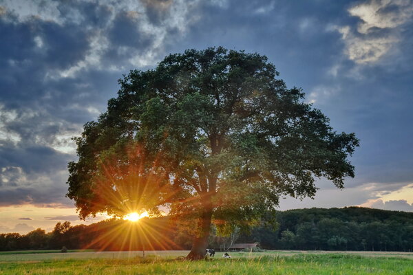 Baum Kühe Wiese Sonne Umland