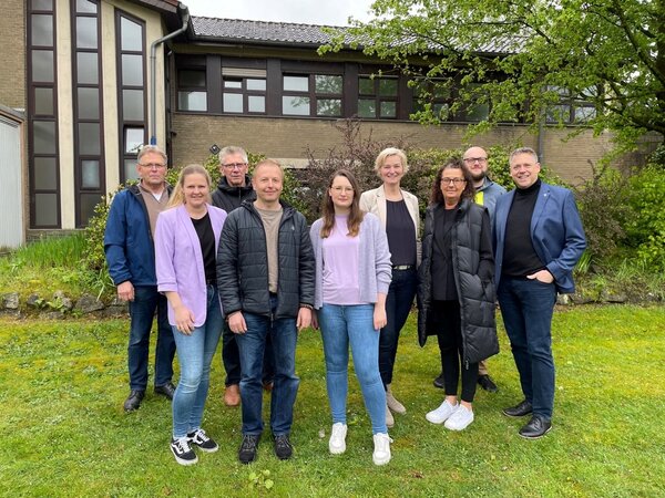 V.l.n.r vorne: Maresa Vorbrink (Kreis Jugendamt), Mirco Harmel (Mediencooperative - Steinfurt), Anna-Lena Schelske (Einrichtungsleitung Mediencooperative Steinfurt), Beate Enneker-Sudhoff (Gemeinde Westerkappeln), Benedikt Ende(Leitender Pfarrer).
